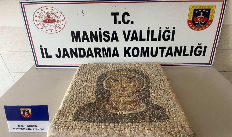 Manisa’nın Akhisar ilçesinde jandarma ekipleri tarafından bir şahsın evinde yapılan aramada piyasaya 50 milyon TL’ye satılmaya çalışılan 2 bin yıllık Meryem Ana figürlü olduğu iddia edilen mozaik ele geçirildi.
