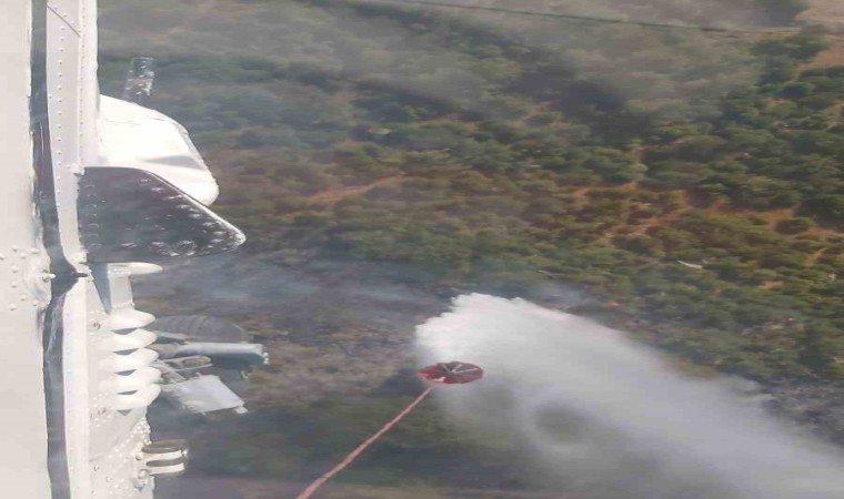 Manisa’nın Soma ilçesinde ormanlık alanda çıkan yangına havadan ve karadan müdahale ediliyor.