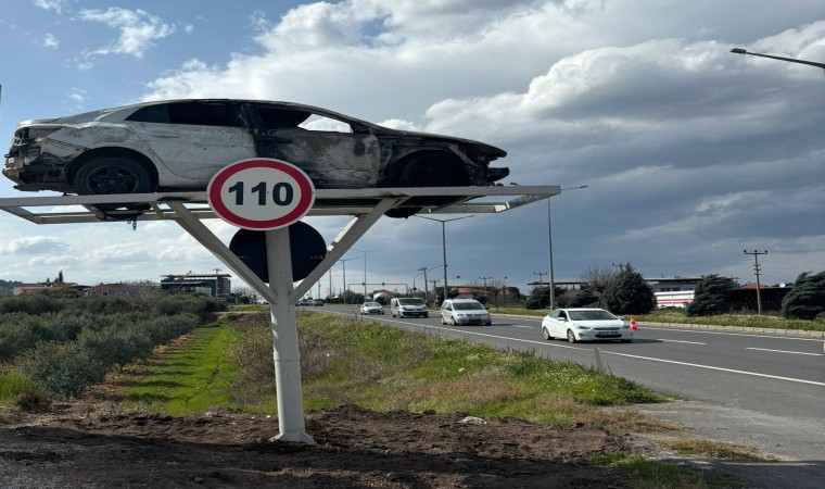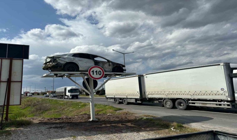Manisa İl Emniyet Müdürlüğü Bölge Trafik Denetleme Şubesince, trafik kurallarını ihlal etmenin doğuracağı sonuçları sürücülerin görmesi için çalışma yaptı. Bu kapsamda Ankara-İzmir D300 Karayolu Sart Mahallesi uygulama noktasına, kaza sonucu hurdaya ayrılan araç yerleştirildi. Sürücülerin rahatlıkla görebilmesi için hurda araç, yaklaşık 2 metre yüksekliğindeki demir ayakların üzerine oturtuldu. Hasarlı aracın önüne ise azami hız sınırını bildiren levhalar konuldu.