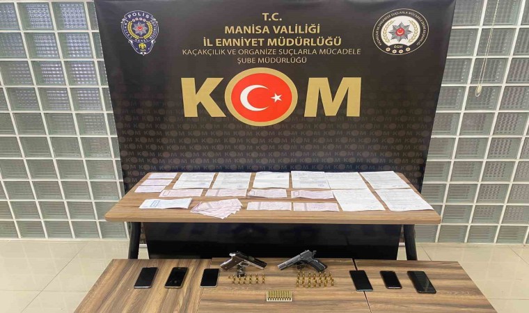 Kaçakçılık Ve Organize Suçlarla Mücadele Başkanlığı koordinesinde “KAFES”Operasyonu çerçevesinde, Manisa İl Emniyet Müdürlüğüne bağlı Kaçakçılık ve Organize Suçlarla Mücadele Şube Müdürlüğü tarafından Yunusemre, Şehzadeler ve Soma ilçelerinde tefecilik, yağma, silahlı tehdit ve nitelikli dolandırıcılık suçlarına karıştığı tespit edilen şüphelilere baskın düzenlendi. Operasyonda C.D., H.D., M.Ç., F.Ç., İ.Ç.,F.Ç. ve F.Ç. isimli şahıslar yakalanarak gözaltına alındı. Şüphelilerin evlerinde yapılan aramalarda 2 adet ruhsatsız tabanca, 94 adet fişek, 7 adet uyuşturucu hap, çok sayıda çek, senet ve sözleşme ele geçirildi. Mahkemeye sevk edilen şüphelilerden 6 kişi tutuklandı, 1 kişi de serbest bırakıldı.