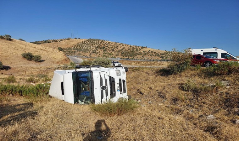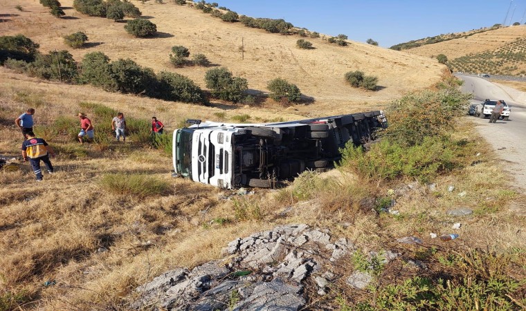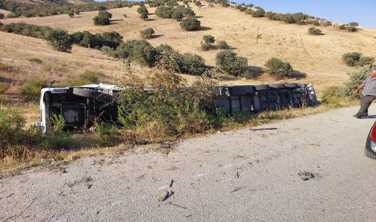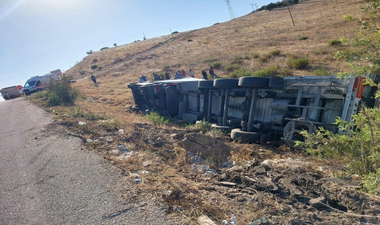 Manisa’nın Kula ilçesinde meydana gelen kazada tır yan yatarken, sürücü yaralandı.