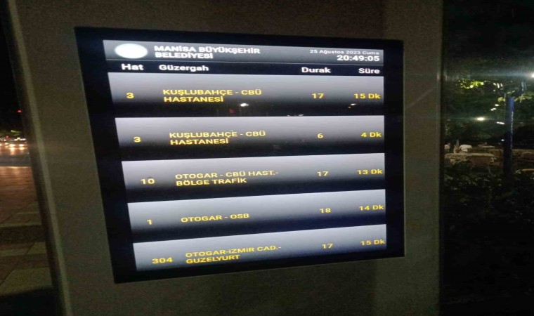 Manisalıların toplu taşıma kullanımını daha pratik hale getirmek için çalışma yapan Manisa Büyükşehir Belediyesi Ulaşım Dairesi Başkanlığı ve MANULAŞ Genel Müdürlüğü, durakta bekleyen vatandaşların yaklaşan araçlara ait hat bilgisi, kalan durak sayısı ve süre bilgilerini görebildikleri akıllı durakların sayısını 18’e çıkardı. Manisa Büyükşehir Belediyesi Ulaşım Dairesi Başkanı Hüseyin Üstün, MANULAŞ Genel Müdürü Mehmet Özgür Temiz ve 155 No’lu Manisa Özel Halk Otobüsleri Kooperatifi Başkanı Fevzi Açıkel ile birlikte akıllı duraklarda incelemelerde bulundu.