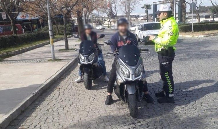 Manisa İl Emniyet Müdürlüğü Trafik Tescil ve Denetleme Şube Müdürlüğü ve İlçe Trafik Büro Amirliği tarafından motosiklet sürücülerine yönelik il genelinde denetleme yapıldı. Bin 504 sürücünün denetlendiği uygulamada 128 sürücüye kask kullanmamaktan, 45 sürücüye ehliyetsiz araç kullanmaktan, 1 sürücüye abart egzoz kullanmaktan, 4 sürücüye araç üzerinde teknik değişiklik yapılmasından, 7 sürücüye yetersiz ehliyetten, 8 sürücüye plakasız araç kullanmaktan ve 41 sürücüye diğer kanun maddelerinden toplamda 1 milyon 20 bin 368 TL para cezası kesilirken 9 araç ise trafikten men edildi.