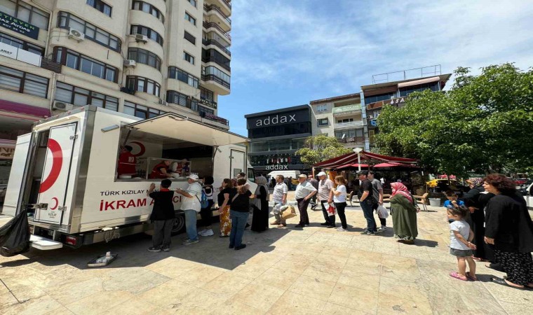 Programda, Türk Kızılay ekipleri tarafından vatandaşlara pilav ve ayran dağıtıldı.