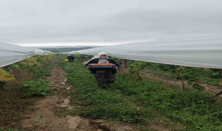 Kasım ayının sonlarına gelinmesine rağmen Manisa’nın Sarıgöl ilçesinde örtü altındaki üzümlerin yurt içi ve yurt dışı pazarları için kesimleri hız kesmeden aralıksız devam ediyor. Soğuk ve yağmurlu hava nedeniyle sıkı sıkı giyinen, ayaklarına bot yada çizmeler giyen, yağmurluk ile korunan üzüm işçileri üzüm kamyonu dolana kadar kesim ve yükleme işlerini soğuk havada yağmur altında ve çamurda yapıyor. Üzüm salkımları önceden temizlendiği için kesim ve yükleme işlemleri yağmur ve çamura rağmen kısa sürede tamamlanıyor.