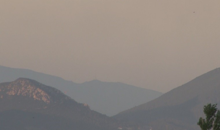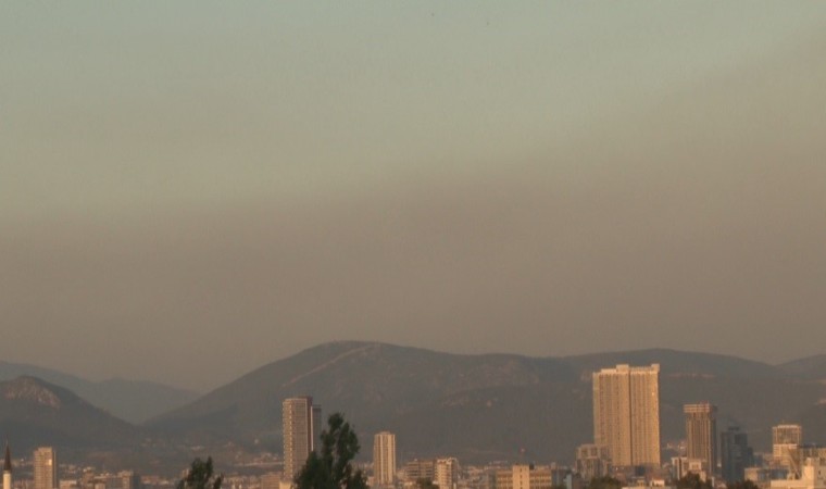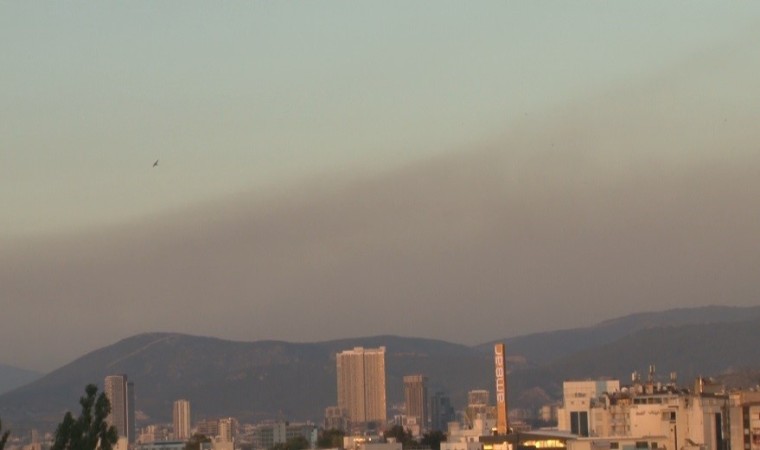 Manisa’nın Saruhanlı ilçesinde çıkan orman yangınını söndürme çalışmaları yaklaşık 7 saattir devam ederken, alandan yükselen dumanlar İzmir’den de görülüyor.
