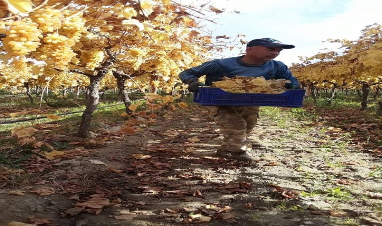 Manisa’nın Sarıgöl ilçesinde örtü altındaki üzümlerde kış aylarına rağmen hasat devam ediyor.