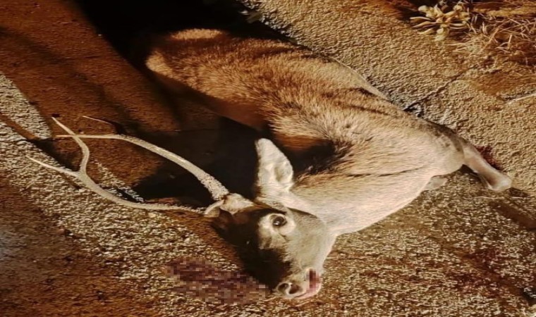 Manisa’nın Sarıgöl ilçesinde otomobilin çarptığı geyik telef oldu.