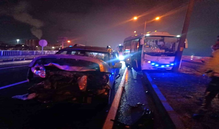 Kaza, dün akşam saatlerinde İzmir - Ankara karayolu üzeri OSB Kavşağı’nda meydana geldi. Edinilen bilgiye göre, İzmir’den Turgutlu istikametine seyir halinde olan Ramazan K. (41) yönetimindeki 45 ZB 5204 plakalı hafif ticari araç, yağış nedeniyle kayganlaşan yolda aynı yönde giden Serdar Ç. (40) yönetimindeki 45 AHA 382 plakalı otomobille çarpıştı. Bu sırada arkadan gelen Zekeriya B. (39) yönetimindeki 45 ALF 099 plakalı işçi servisi, önce hafif ticari araca, ardından refüjde bulunan aydınlatma direğine çarptı. İhbar üzerine olay yerine polis, sağlık ve itfaiye ekipleri sevk edildi. Kazada 9’u işçi servisinde olmak üzere toplam 10 kişi yaralandı. Sağlık ekiplerince Turgutlu Devlet Hastanesi ve Manisa Şehir Hastanesine sevk edilen yaralıların durumunun iyi olduğu öğrenildi. Kazayla ilgili inceleme başlatıldı.