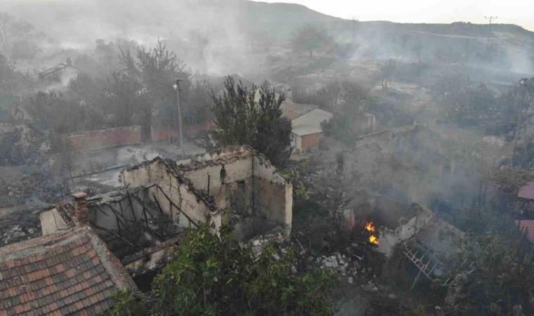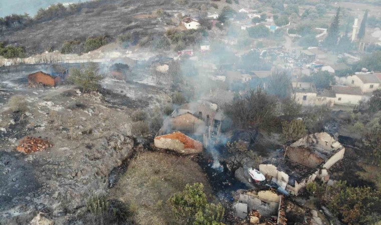 Manisa’nın Saruhanlı ilçesinde öğle saatlerinde çıkan orman yangını devam ederken, Manisa Valisi Yaşar Karadeniz bir mahallede 14 ev ve 3 ahırın kül olduğunu söyledi.
