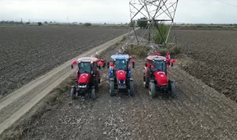 Manisa’nın Turgutlu ilçesinde çiftçilik yapan Remzi Çizmeci, Cumhuriyet’in 100. yılı dolayısıyla traktörleri Türk bayrakları ve balonlarla süsledi.