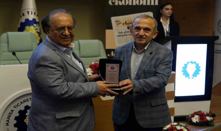 Manisa’da “Dış Ticarette Yeni Ufuklar Buluşması” toplantısının 8.’si Manisa Ticaret ve Sanayi Odası ev sahipliğinde gerçekleştirildi. Toplantıda, Manisa TSO Yönetim Kurulu Başkanı Mehmet Yılmaz tarafından 2013-2023 tarihleri arasında Vestel İcra Kurulu Başkanlığı görevini yürüten Turan Erdoğan’a plaket verildi.