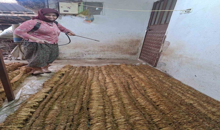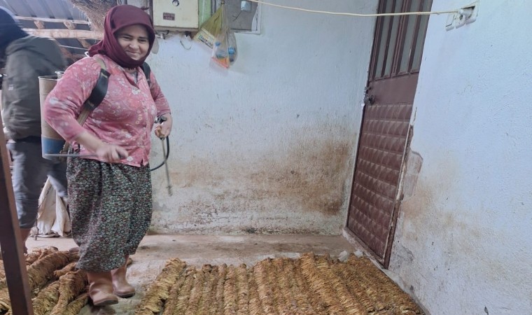 Havaların kurak gitmesi nedeniyle verim kaybının olduğunu ifade eden tütün üretici Leyla Zeybek, "Tarlaya diktiğim tütün fidelerinden sonra hiç tarım ilaçlaması yapmadım. Bu yıl kurak hava nedeniyle beş yüz kilo tütünüm oldu. Kurutmasını da eskiden olduğu gibi dizerek kurutma yaptım. Yeni sistem elekler üzerinde oluyor ben bildiğim gibi eskisi gibi yaptım.” dedi.