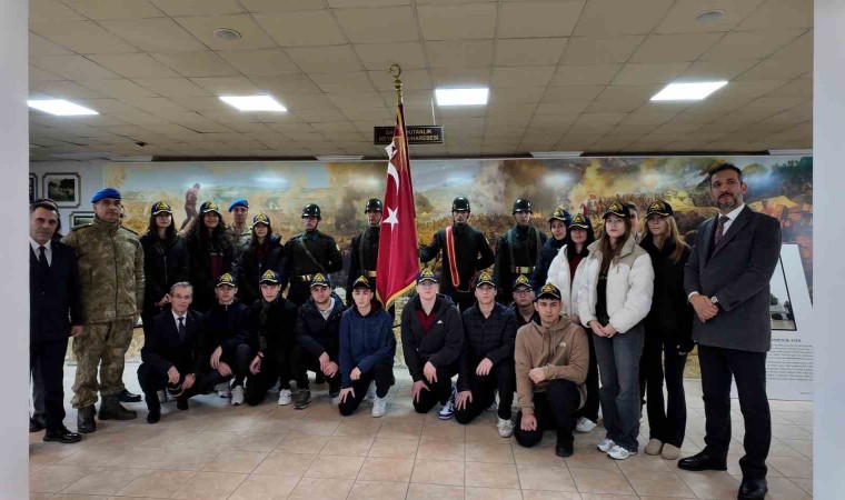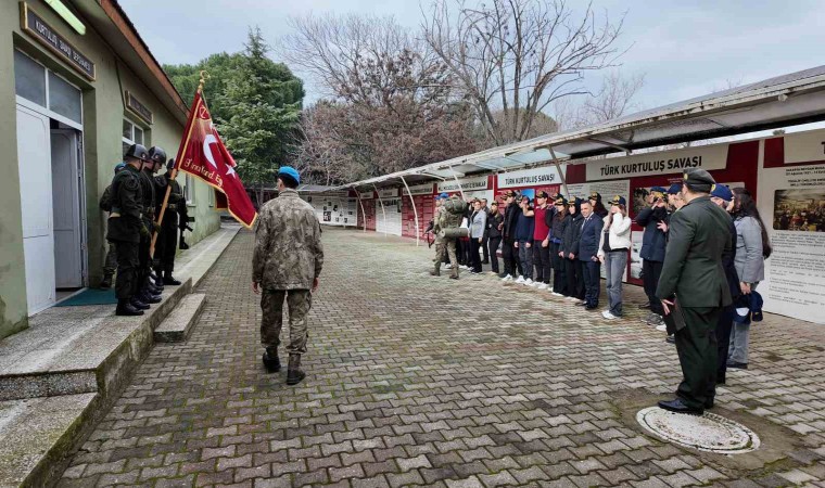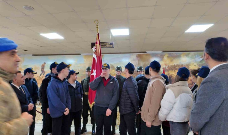 Manisa Sosyal Bilimler Lisesinden bir grup öğrenci, Manisa 8. Komando Eğitim Tugayında muhafaza edilen tarihi Alay Sancağını ziyaret etti.