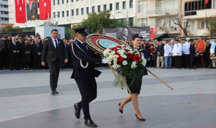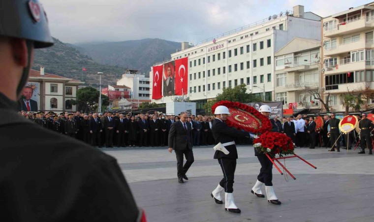 Cumhuriyet Meydanında gerçekleştirilen törende ilk olarak Manisa Valisi Vahdettin Özkan, Garnizon Komutanı Tuğgeneral Mehmet Can Tepedelen, Manisa Büyükşehir Belediye Başkanı Ferdi Zeyrek, siyasi partiler ve STK’lar tarafından Atatürk ve Milli Egemenlik Anıtına çelenk sunuldu. Çelenk sunumunun ardından sirenler eşliğinde 2 dakikalık saygı duruşunda bulunulmasının ardından İstiklal Marşı okundu. Göndere çekilen bayrakların yarıya indirilmesinin ardından Fatih Sergi Salonunda düzenlenen Atatürk’ün veciz sözlerinin yer aldığı fotoğraf sergisi katılımcılar tarafından gezildi.