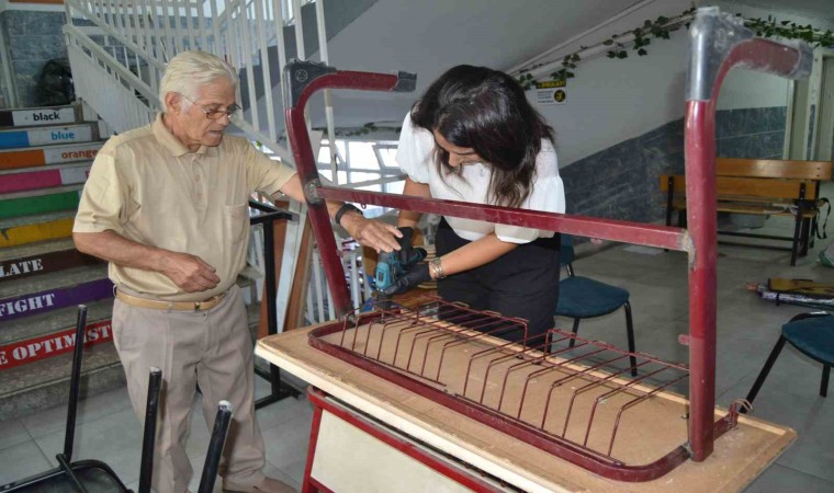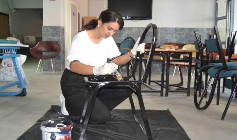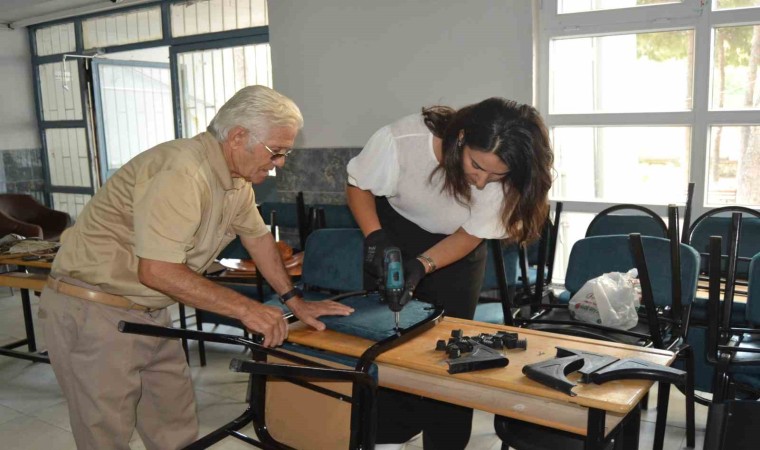 Manisa’nın Salihli ilçesi 50. Yıl Ortaokulu’nda Müdür Yardımcısı olarak görev yapan Hatice Aslan, okulların açılmasına kısa bir süre kalan, masaları, sandalyeleri tamir ederek kullanıma hazır hale getirdi.