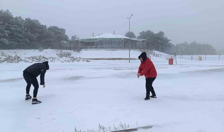 Manisa’nın bin 517 metre yüksekliğe sahip Spil Dağı Milli Parkında yılın ilk kar yağışı başladı.