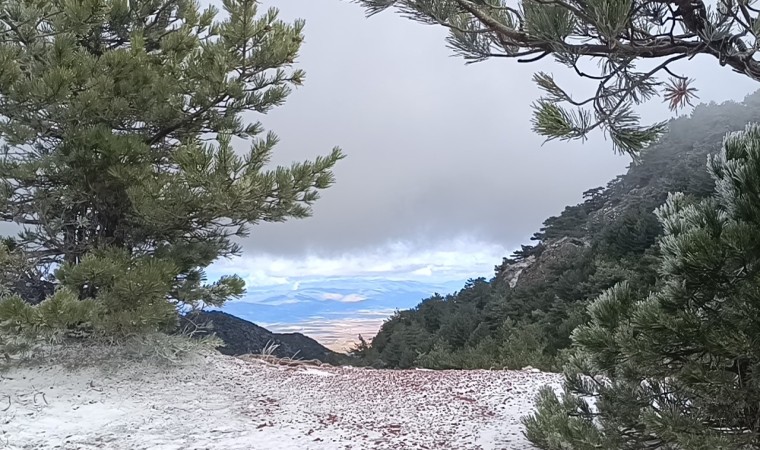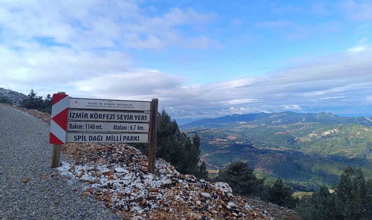Manisa ve İzmir’in arasında yer alan bin 517 metre rakımlı Spil Dağı Milli Parkı’na mevsimin ilk karı düştü.