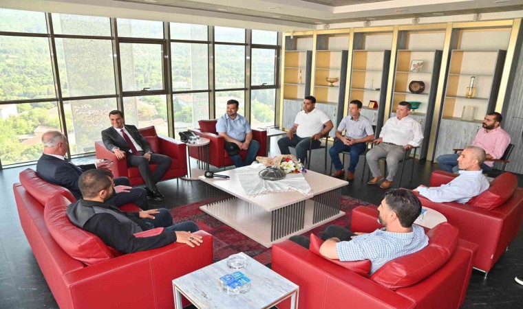 Manisa Meyve Sebze ve Umum Pazarcılar Esnaf Odası Başkanı Destan Bulgay, yönetim kurulu üyeleri ile birlikte Manisa Büyükşehir Belediye Başkanı Ferdi Zeyrek’e ziyarette bulundu. Başkan Ferdi Zeyrek’e görevinde başarılar dileyen Oda Başkanı Destan Bulgay, “Her zaman senden o yakınlığı görmüş insanlarız, seni yakinen tanıyan insanlarız. O yüzden biraz geç oldu ama bilerek son zamana bıraktık. Hem rahat rahat kendimizi anlatalım hem de senin başının kalabalığı gitsin istedik. Özellikle seninle tanışıp randevuya katılabilmek için tüm arkadaşlarım sabırsızlandı. Sana karşı özel bir sevgileri var” ifadelerini kullandı.