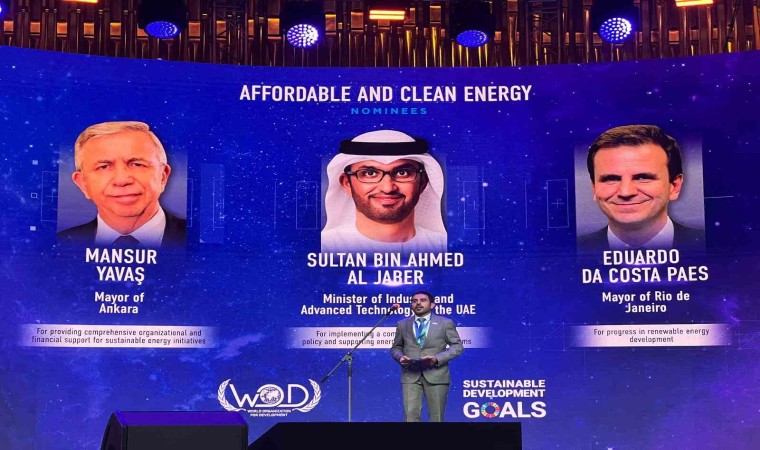 Ankara Büyükşehir Belediye Başkanı Mansur Yavaş, sürdürülebilirlik alanındaki çalışmaları ile Brezilya’nın Rio de Janeiro Belediye Başkanı Eduardo Da Costa Paes’i ve Birleşik Arap Emirlikleri Endüstri ve İleri Teknoloji Bakanı Sultan Bin Ahmed Al Jaber’i geride bırakarak uluslararası prestije sahip ‘Yeşil Enerji Ödülü’ne layık görüldü.