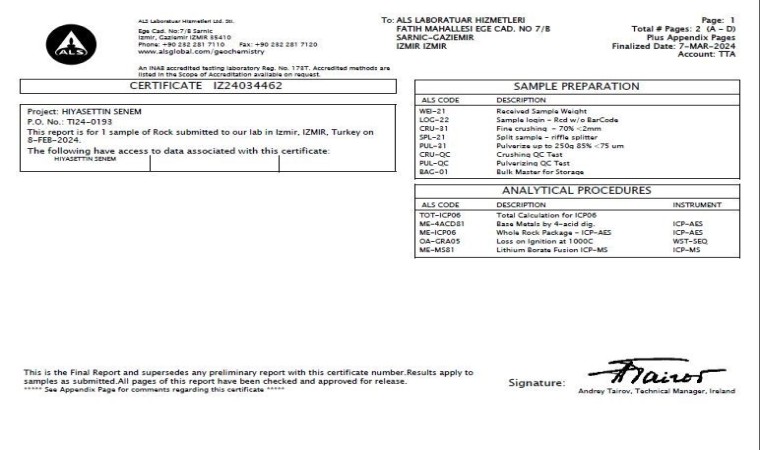 Elinde irili ufaklı yaklaşık 20 adet göktaşı olduğunu söyleyen Hıyasettin Senem, “Geçen sene mantar toplamaya çıktığım tarlada taş buldum. Bu taşlar benim dikkatimi çekmişti. Bu taşların göktaşı olabileceğinden şüphelendik ve İzmir 9 Eylül Üniversitesi’nde bulunan laboratuvara incelemeye gönderdik. Çıkan sonuçlarda elimizdeki taşların göktaşı olduğu belgelendi. Şu an elimizde 40 kilo göktaşı var. Yapılan analizler sonucunda kondrit cinsinden göktaşı olduğu kesin tespit edildi” dedi.