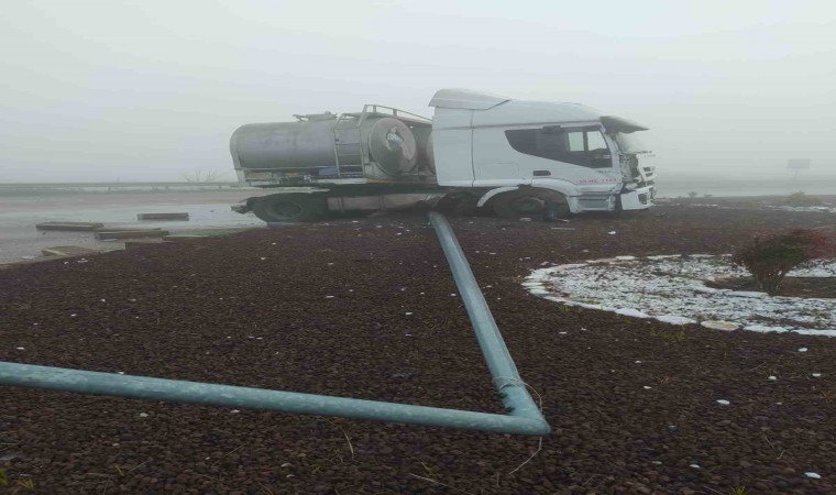 Edinilen bilgiye göre, A.A. yönetimindeki 35 HC 3181 plakalı süt tankeri, Manyas-Gönen yolu kavşağında sürücünün direksiyon hakimiyetini kaybetmesiyle yoldan çıktı.