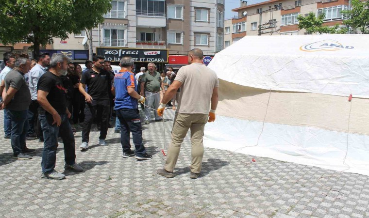 1. derece deprem bölgesinde bulunan Manyas ilçesinde AFAD personeli tarafından kurum amirleri, muhtarlar ve diğer kamu ve özel sektör personeline doğal afetlere karşı nazari ve tatbiki eğitim veriliyor. Müftülük toplantı salonunda nazari eğitim verilirken, tatbiki eğitim de Manyas merkez Çarşı cami bahçesinde yapılıyor. Manyas Kaymakamı Emre Yeşil’in katkı ve katılımlarıyla gerçekleşen eğitim toplantılarından doğal afet anında ilk yapılacak işlemler ve korunma yöntemleri ve çadır kurulması gösterildi.