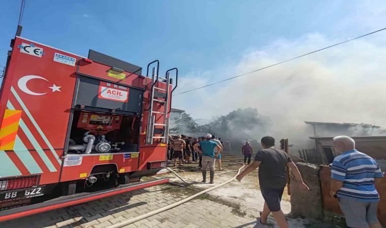 Balıkesir’in Manyas ilçesinde bir ahırda çıkan yangında 3 büyükbaş hayvan yaralanırken, büyük maddi hasar meydana geldi.