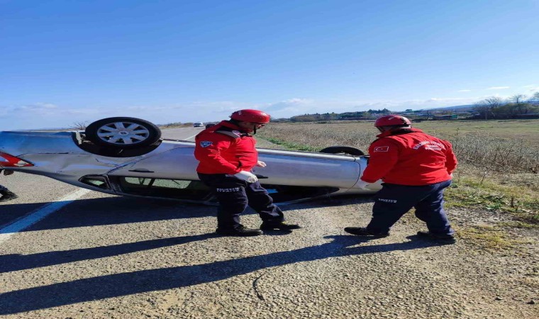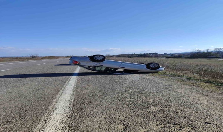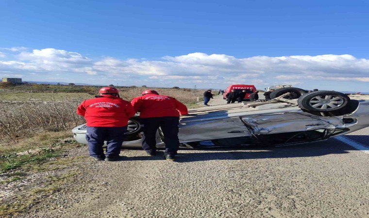 Balıkesir’in Manyas ilçesinde meydana gelen trafik kazasında takla atan otomobilde bir kişi yaralandı.
