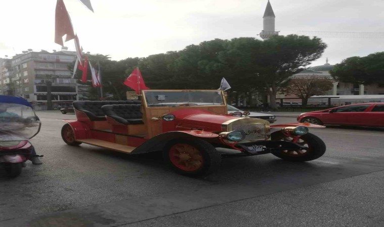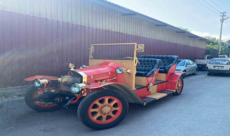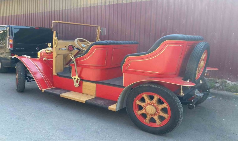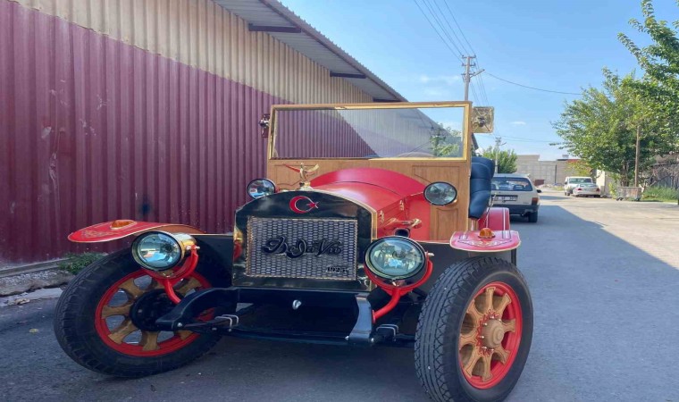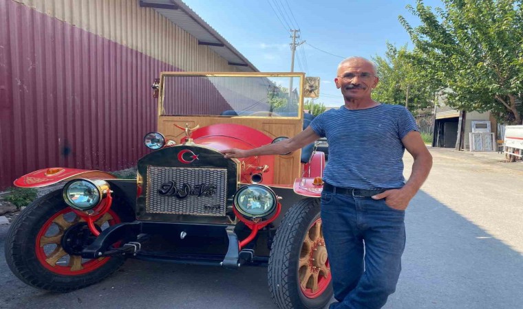 Denizli’de elektrikli klasik tema araba üretmek için kolları sıvayan marangoz, tasarımı ve malzemelerini kendisine ait olan 1925 model aracın elektriklisini 4 ayda eliyle tamamladı.