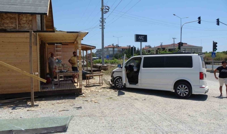 Antalya’nın Manavgat ilçesinde aynı marka-model 2 tur aracının çarpışması sonucu meydana gelen kazada yaralanan olmadı. Kaza yapan araçlardan birisi, çarpmanın şiddetiyle yoldan çıkarak ahşap ev yapmakta olan marangoz ustasının üzerine gelirken, usta son anda kurtuldu.