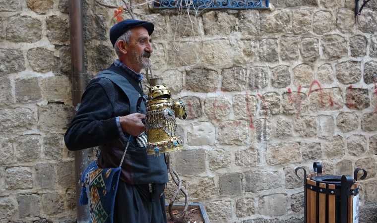 Mardin’de yaşayan 55 yaşındaki Hıdır Takılmaz, 38 yıldır kentin sokaklarında sırtında ’mırra kahvesi’ satıyor.