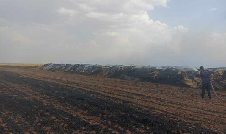 Mardin’de çıkan yangında 300 ton saman balyası tamamen yanarak kül oldu.