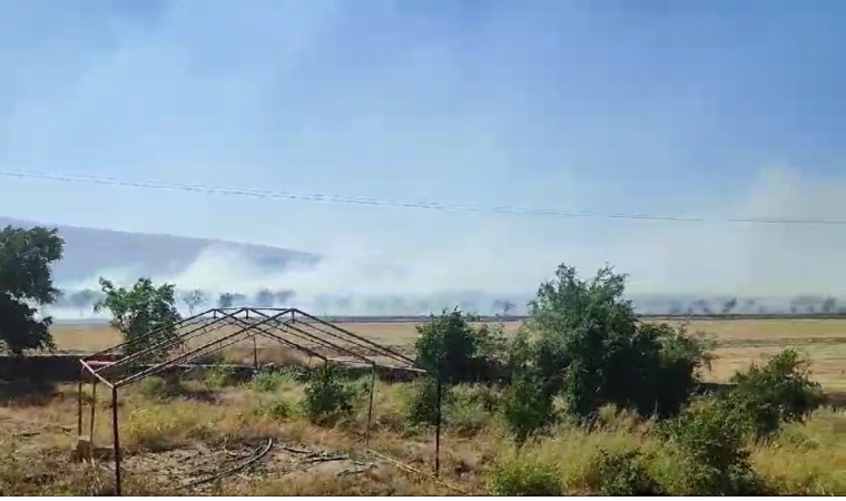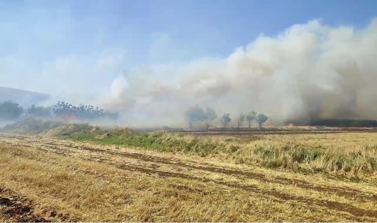 Mardin’in Derik ilçesinde anız yangınında yüzlerce dönümlük alan kül olurken, itfaiye ekiplerinin alevlere müdahalesi sürüyor.