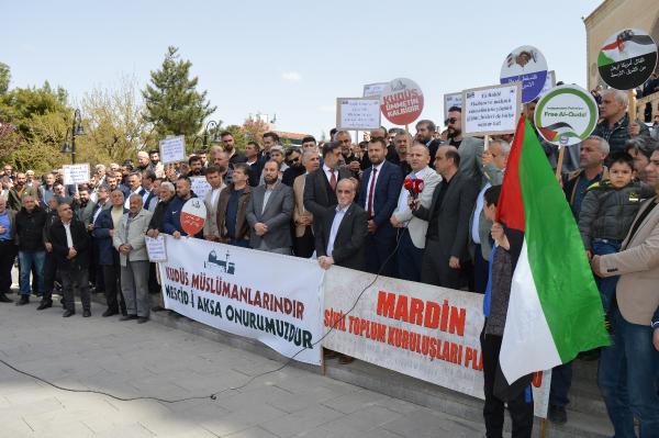 Açıklamaya Artuklu Üniversitesi Rektörü Prof. Dr. İbrahim Özcoşar, siyasi parti ve sivil toplum kuruluşlarının temsilcileri ile vatandaşlar katıldı. Basın açıklamasını platform dönem sözcüsü Necmettin Başboğa okudu. Başboğa, Mescid-i Aksa ve Kudüs’ün Müslümanlar için önemine dikkat çekerek, “Terör devleti İsrail, yine Mescid-i Aksa’nın haremini çiğnedi. Kıble mescidine sığınan yüzlerce Filistinli kardeşlerimizi gözaltına alarak, onlarcasını darbetti. İsrail hiçbir kutsal tanımıyor; hiçbir hukuku ve yasayı dinlemiyor. ABD ve Batı’nın şımarık çocuğu İsrail, Müslüman kanına doymuyor ve zulmüne devam ediyor. Filistinlilerin evlerini yıkarak, yerine Yahudi yerleşimciler için yeni konutlar yaparak işgallerini genişletmeye çalışıyor. Bütün bu işgal ve zulümlerini dünya kamuoyunun ve Müslümanların gözü önünde yapmaktan da kaçınmıyorlar. Kahrolsun İsrail, kahrolsun siyonizm, kahrolsun zulme seyirci kalanlar. Dünya kamuoyunu ve uluslararası camiayı, uluslararası hukukun ve insan haklarının İsrail tarafından açıkça çiğnenmesi karşısında gereğini yapmaya çağırıyoruz. Bu zulme sessiz kalmak, zalimleri cesaretlendirmektedir. Biz de sessiz kalmayacağız, kavli ve fiili dualarımızla mazlum kardeşlerimizin yanında olduğumuzu göstermeye devam edeceğiz. Yaşasın Filistin’in haklı direnişi, yaşasın özgürlük ve istiklal davası, yaşasın İslam kardeşliği” dedi. (DHA)