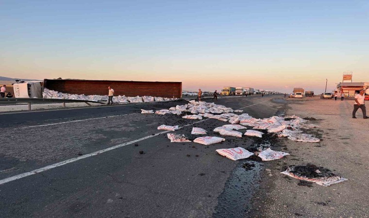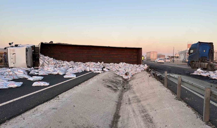 Mardin’in Nusaybin ilçesinde kontrolden çıkan kömür yüklü tırın devrilmesi sonucu 1 kişi yaralandı.