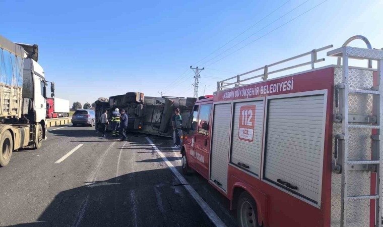 Mardin’in Nusaybin ilçesinde kontrolden çıkan peynir yüklü tırın devrilmesi sonucu meydana gelen trafik kazası maddi hasarla atlatıldı.