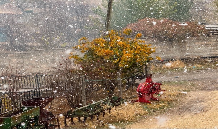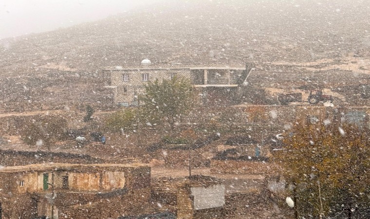 Mardin’in Mazıdağı ilçesinde mevsimin ilk kar yağışı başladı.