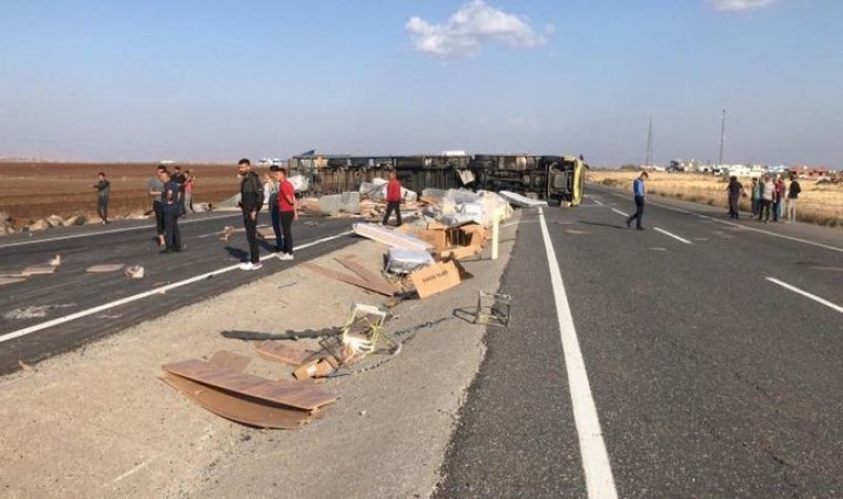 Mardin’in Nusaybin ilçesinde mobilya yüklü tırın devrilmesi sonucu 1 kişi yaralandı.