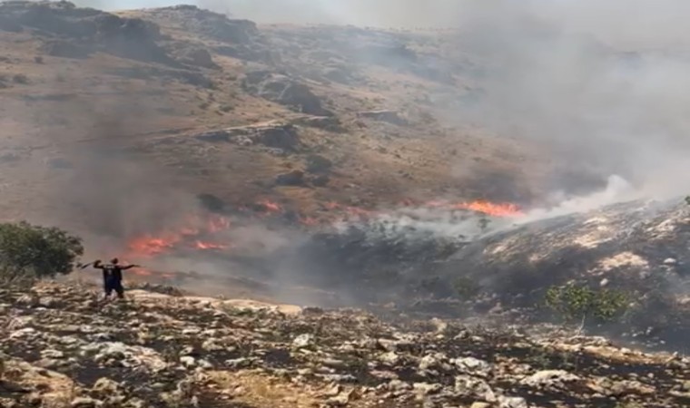 Mardin’de sabah saatlerinde ormanlık alanda çıkan yangında yüzlerce dönümlük alan kül olurken, itfaiye ekiplerinin yangına müdahalesi sürüyor.