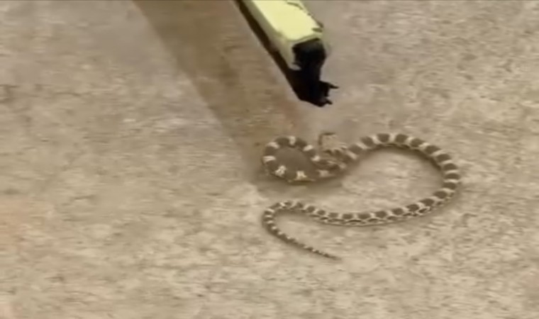 Mardin’in Kızıltepe ilçesinde bir vatandaş tarafından nadir görülen şeritli engerek yılanı görüntülendi.