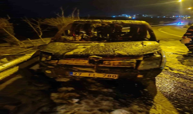 Mardin’in Artuklu ilçesinde seyir halindeki hafif ticari araç alevlere teslim oldu.
