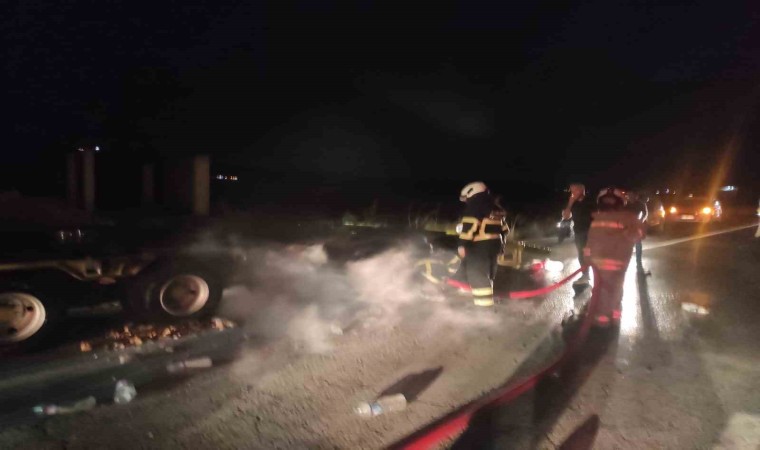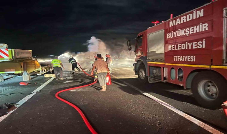 Mardin’de seyir halindeyken alev alan tır kullanılamaz hale geldi.