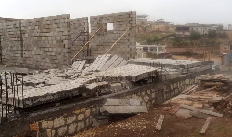 Mardin’in Mazıdağı ilçesine bağlı Şenyuva köyünde, şiddetli rüzgar nedeniyle inşaat halindeki bir ev yıkıldı.