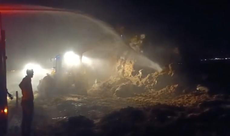 Söndürülen yangında tonlarca saman balyası küle döndü.