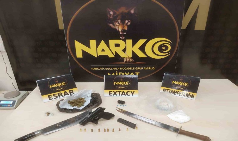 Valilikten yapılan açıklamada; Midyat Narkotik Suçlarla Mücadele Büro Amirliği ekipleri uyuşturucu madde kullanan 3 şahsı yakaladı. Devam eden çalışmalarda yakalanan şahıslardan birinin ikametinde yapılan aramada; 121 kilo 86 gram metamfetamin, 25 kilo 69 gram esrar, 4 adet extacy hap, 1 adet ruhsatsız tabanca, 2 adet şarjör, 10 adet fişek ve 2 adet kesici alet ele geçirildi. Konuyla ilgili yakalanan 3 şahıstan 1’i sevk edildiği adli makamlarca tutuklanarak cezaevine gönderildi.
