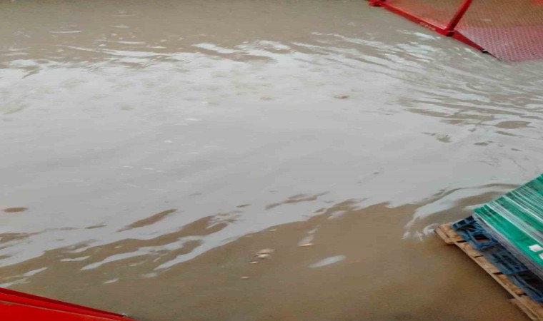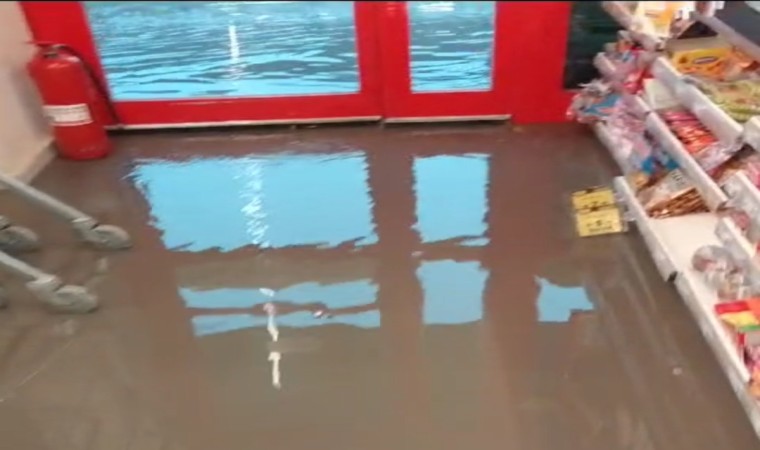 Mardin’in Nusaybin ilçesinde etkili olan yağış sonrası marketleri su bastı.