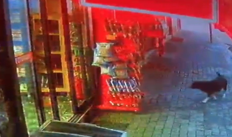 Aydın’ın Efeler ilçesinde bir büfe önündeki stanttan köpeğin cips çalması güvenlik kamerasına yansıdı. Yaşanan olayın ardından şaşırdığını dile getiren büfe sahibi, hemen her gün köpeğin cips aldığını söyledi.