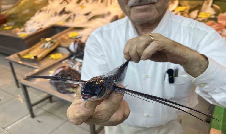 Uçan balığını ilk kez görenler balığı inceledi. Usta Balıkçı Kenan Balcı’dan balık hakkında bilgi de alan vatandaşlar şaşkınlığını gizleyemedi.