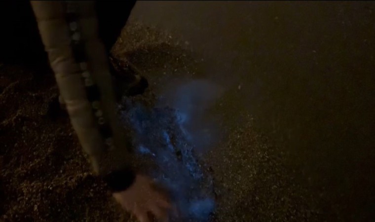 Bursa’nın Mudanya ilçesinde, tek hücreli organizmaların aşırı derecede üremelerinden sonra toplu halde su yüzüne çıkmalarıyla yaşanan ’alg patlaması’ deniz suyunu gece yarısı mavi ışıklı hale getirdi. Denizdeki ışığı görenler büyük şaşkınlık yaşadılar.
